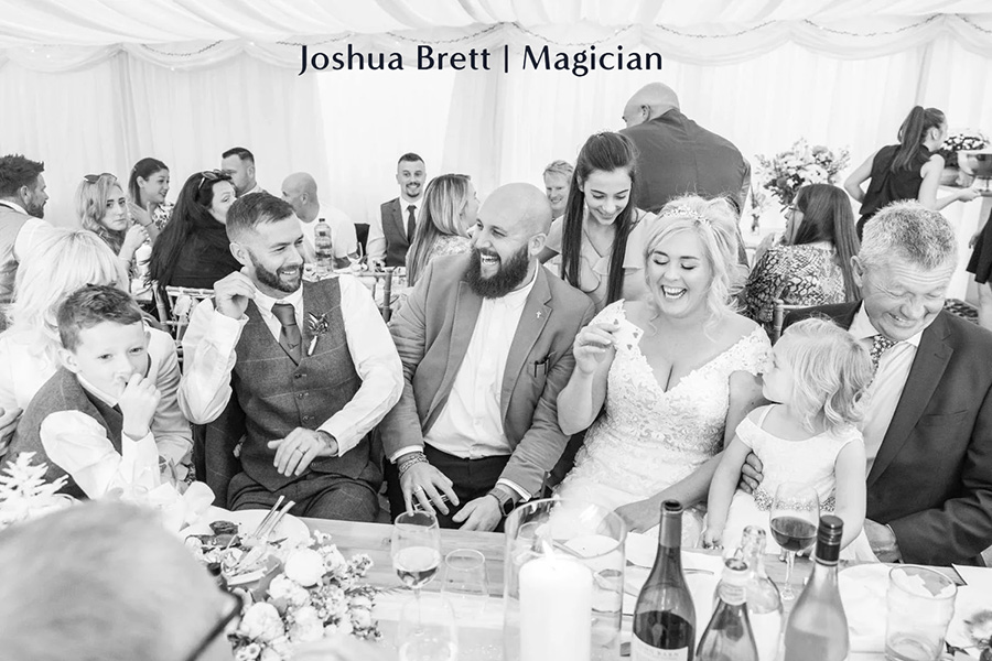 Joshua Brett supports couples looking to enhance the atmosphere of their wedding day by providing interactive close up magic that can take place across a range of moments and settings.